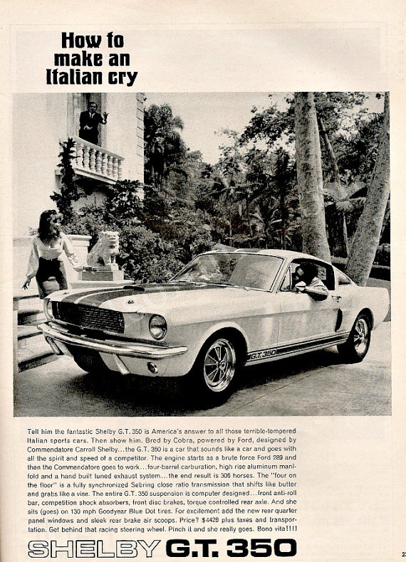 That last pic is of a 67 Shelby clone -- the exhaust is all wrong for any year. Almost all of the real Shelby's are left stock.